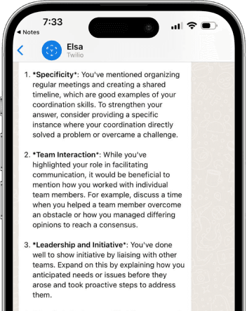 Practice your responses in a safe space with Elsa. Get personalized feedback on your delivery, clarity, and confidence. Ace those interviews like a seasoned pro!